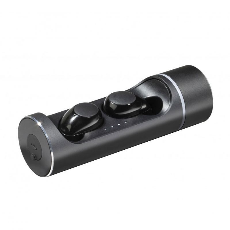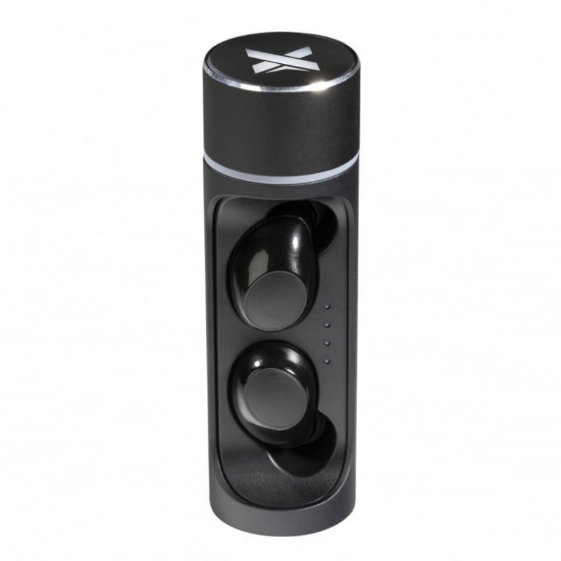 Deux oreillettes sans fil avec Bluetooth 4.2 EDR (Enhanced Data Rate) pour une optimisation de la qualité du son. Muni d'un socle cylindrique en métal pour recharger et ranger les oreillettes, logo lumineux. La fonction micro intégrée permet la prise d'appels téléphoniques (son sur une seule oreillette).