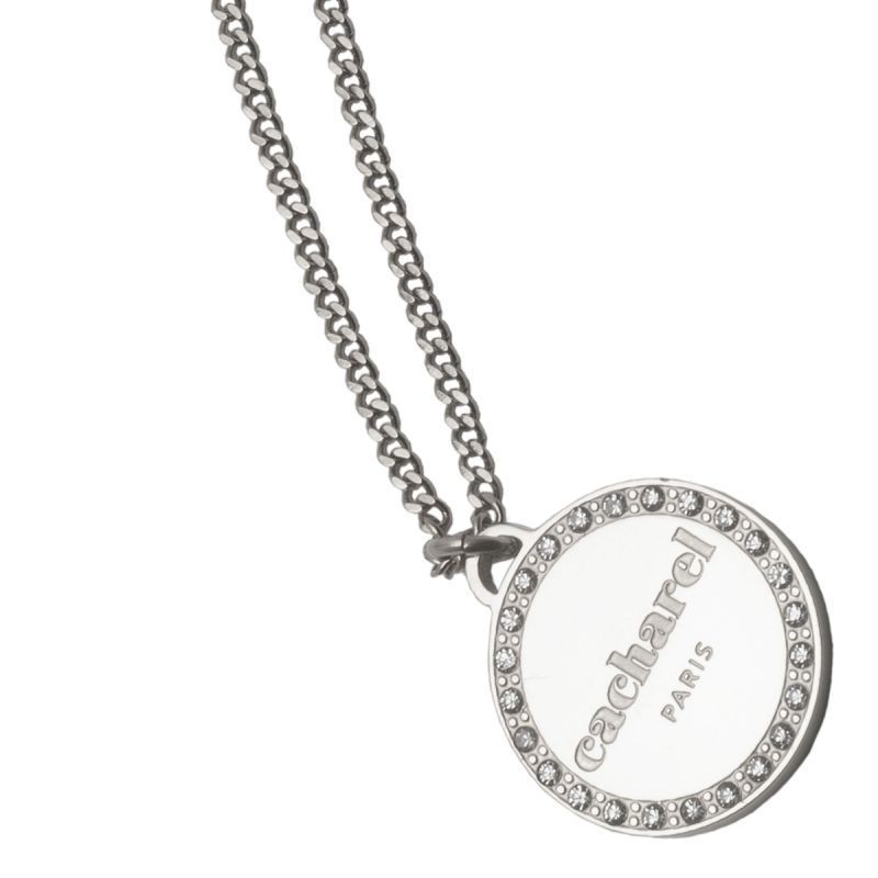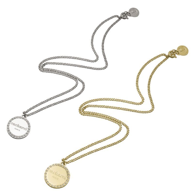 Le collier Butterfly Gold de Cacharel est en acier inoxydable doré. Sur le pendentif rond apparaît la marque Cacharel et le contour est orné de petits cristaux. Ce bijou est à la fois féminin, tendance et classique.
