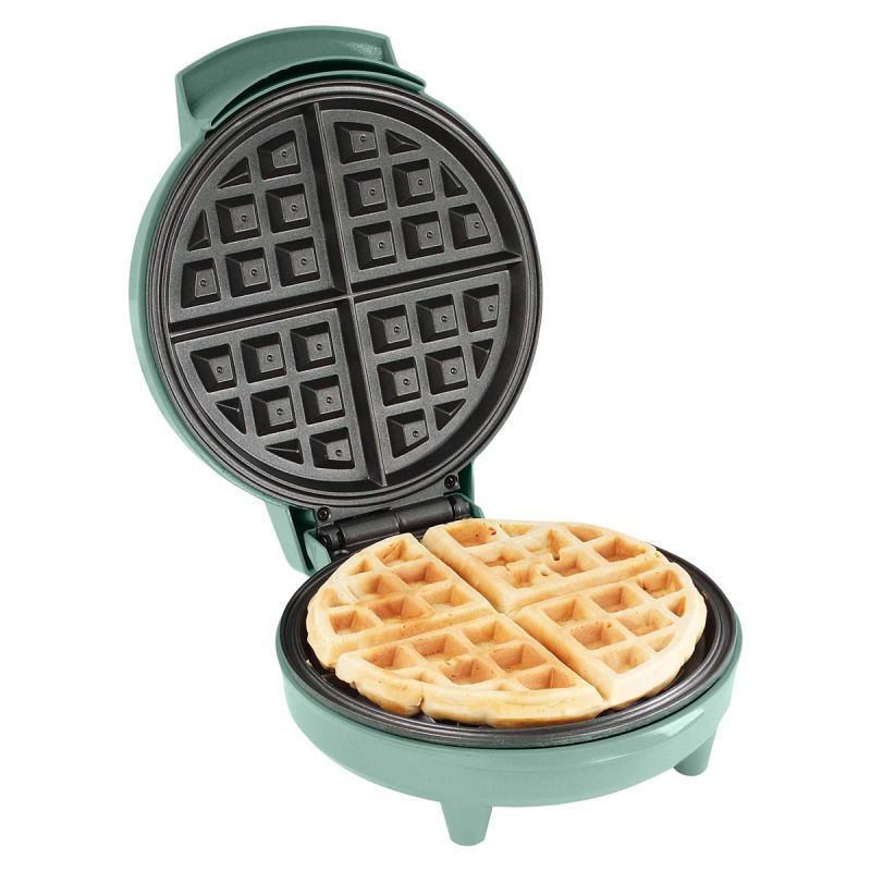 Appareil à gaufres capacité 4 pièces par fournée. Plaques fixes avec revêtement antiadhésif. Thermostat automatique. Témoins de fonctionnement et "prêt à cuire". Pieds antidérapants.